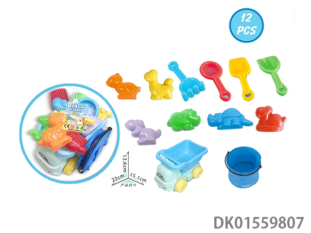 Large truck with dinosaur beach accessories and folding bucket (12) pcs