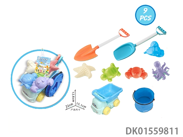 Large truck with beach accessories and folding bucket (9) pcs