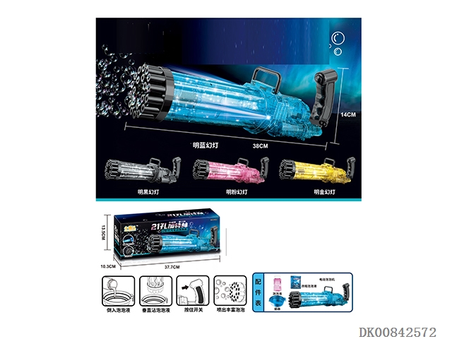 (New) 21 hole transparent phantom light electric gatling bubble machine (four colors)