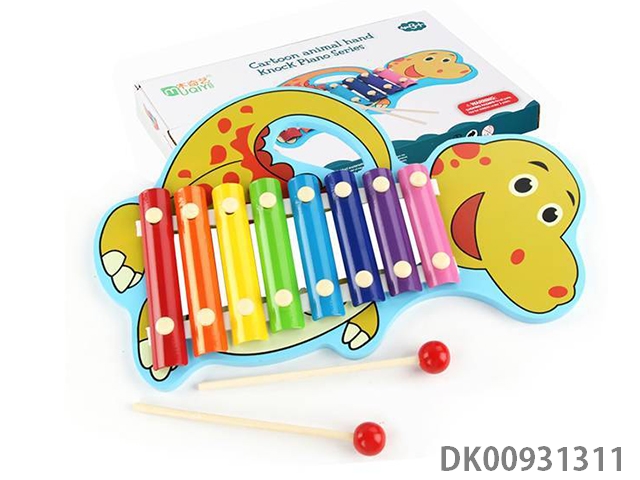 Wooden dinosaur playing the piano in 8 tones