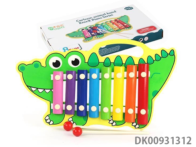 Wooden alligator playing the piano in 8 tones
