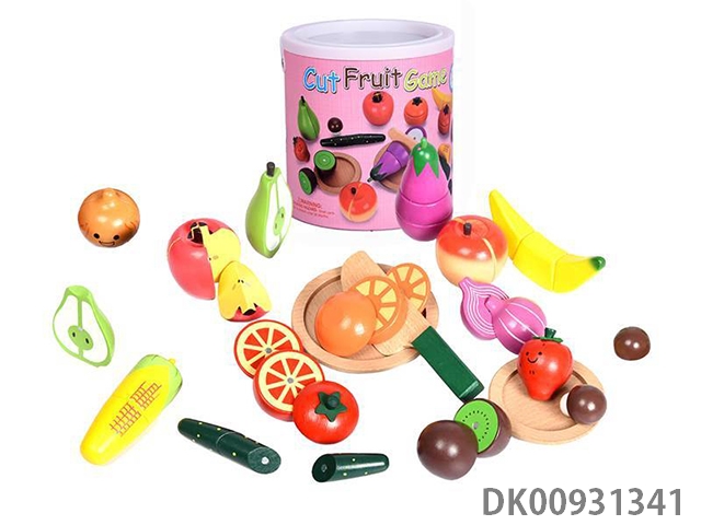 Cut the wooden magnetic fruits and vegetables