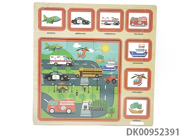 Wooden english object recognition vehicle puzzle