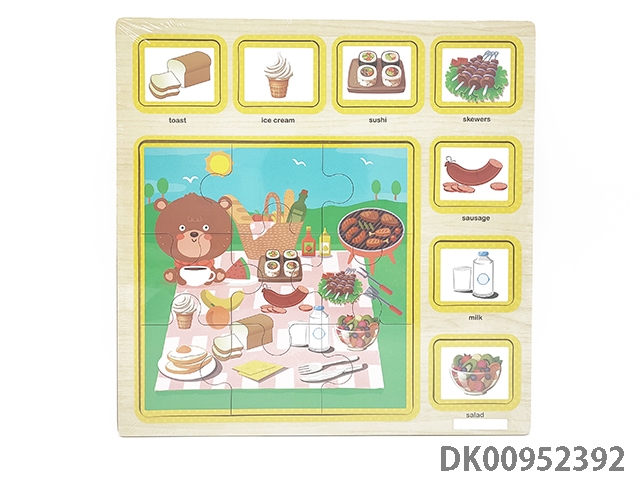 Wooden plane picnic food puzzle