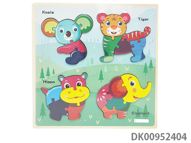 Wooden three-dimensional 4-in-1 animal puzzle