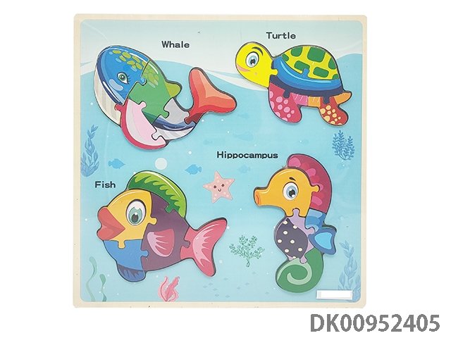 Wooden three-dimensional 4-in-1 marine animal puzzle