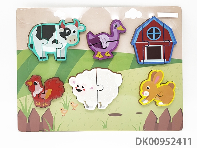 Wooden three-dimensional farm animal scene puzzle