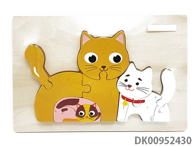 Wooden three-dimensional kitten parent-child puzzle