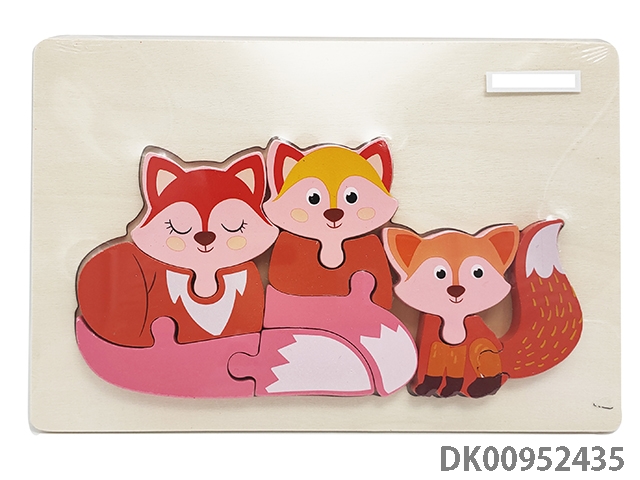 Wooden three-dimensional fox parent-child puzzle