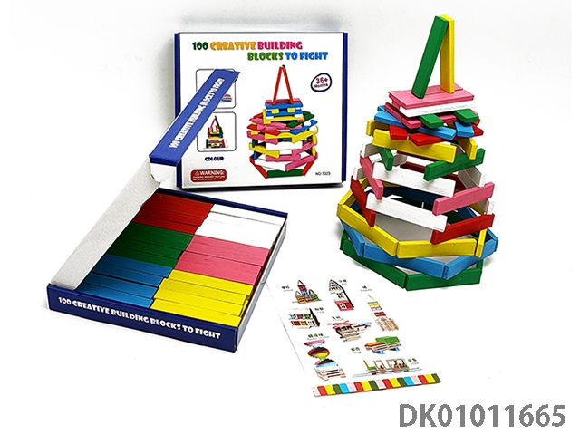 100 Pieces of wooden colored building blocks