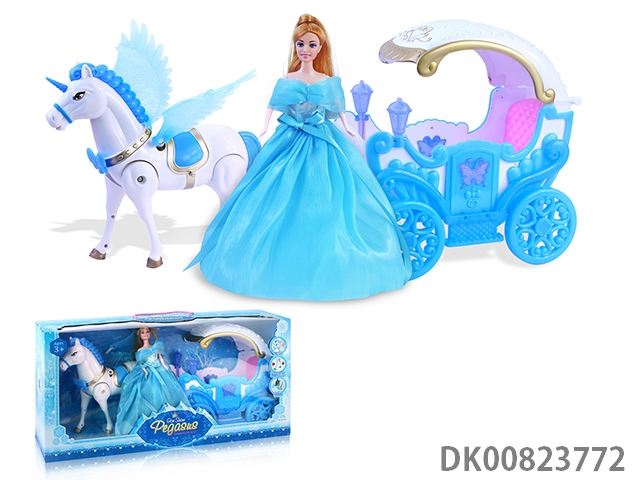 Electric pegasus with music wings swing and evening dress 11.5 inch princess and carriage with light
