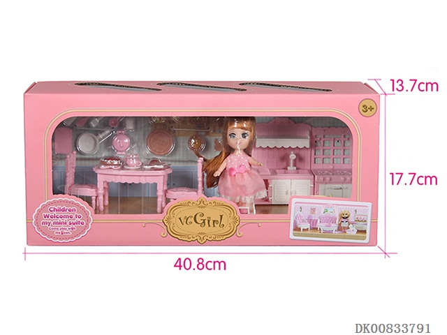 11 Inch full body enamel live eye girl with hamburger set