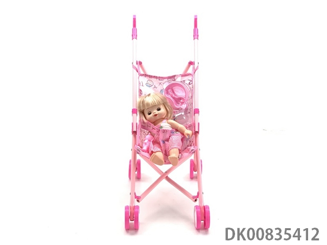 11 Inch full body enamel girl with iron cart set