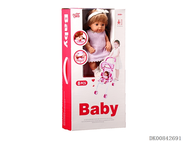 12 Inch 12 sound full pool urinating girl and covered iron cart and accessories 9pcs