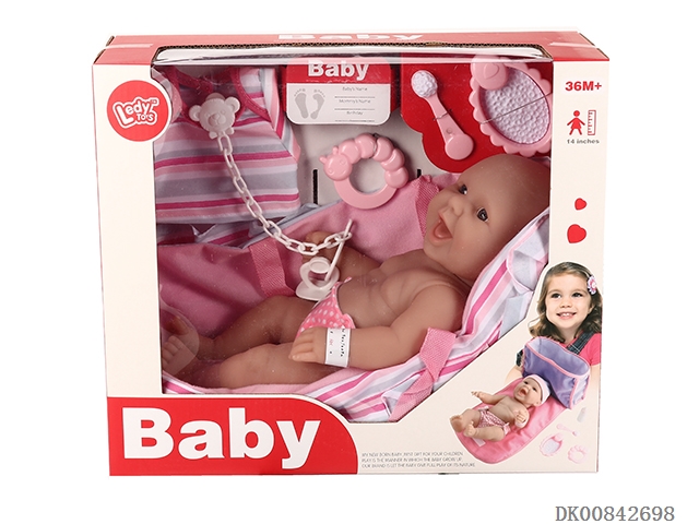 14 Inch newborn baby and basket and other accessories