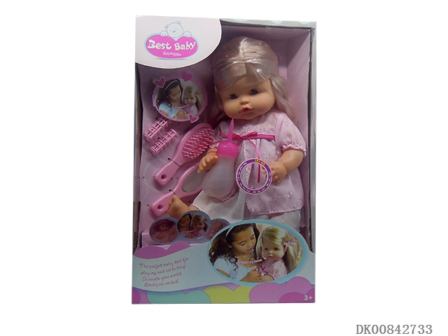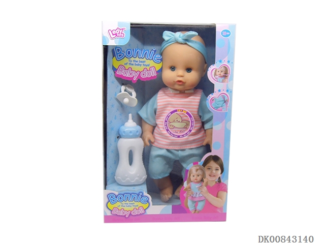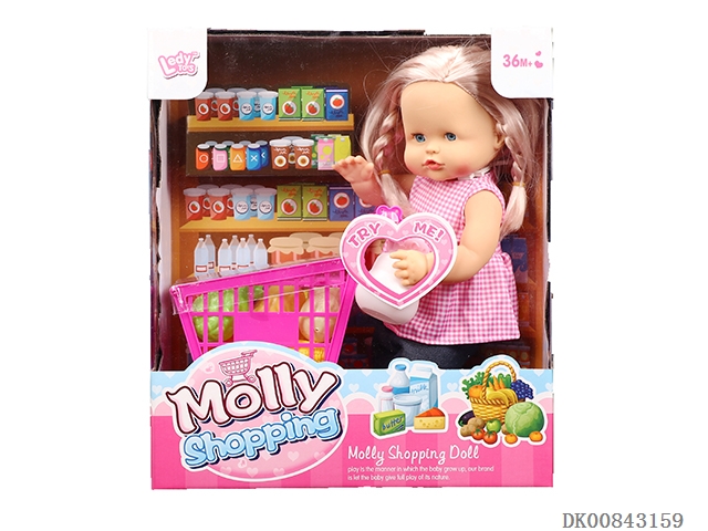 16 Inch 12 sound drinking water pee girl and shopping cart and fruit and milk bottle