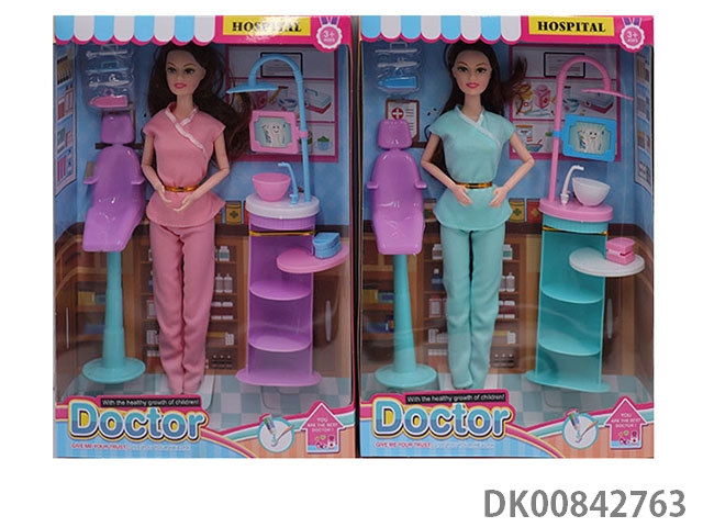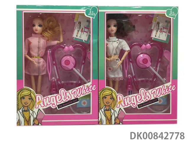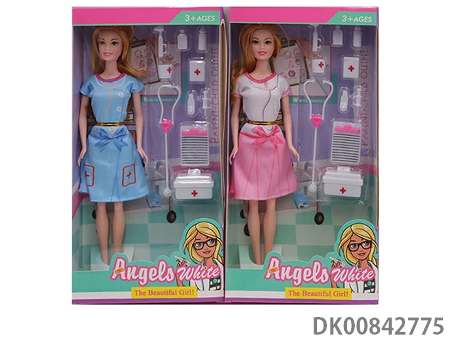 11.5 Inch solid 9 joint doctor theme short skirt girl with stethoscope and other accessories 2 mixed
