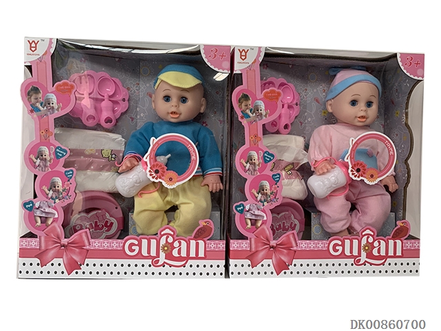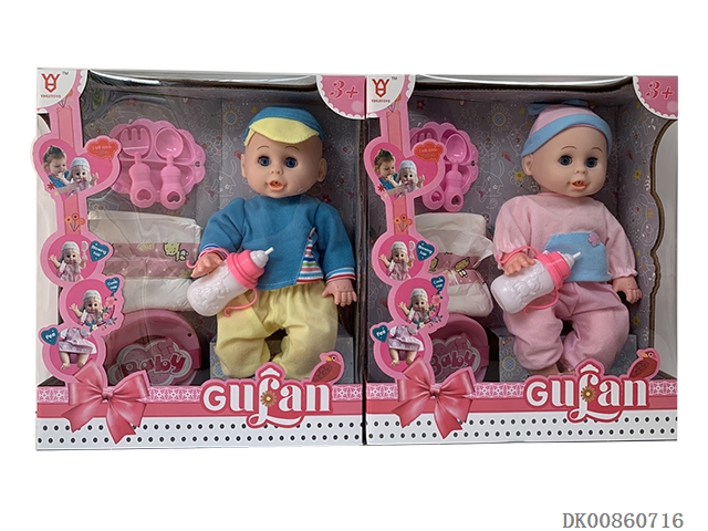 14 Inch doll (dinner plate, diaper, stool basin, milk bottle and 4-tone ic)