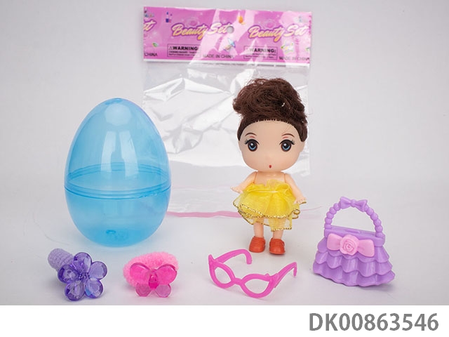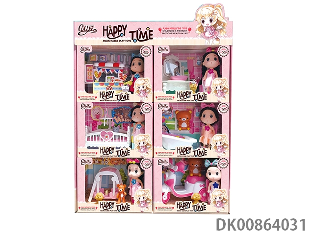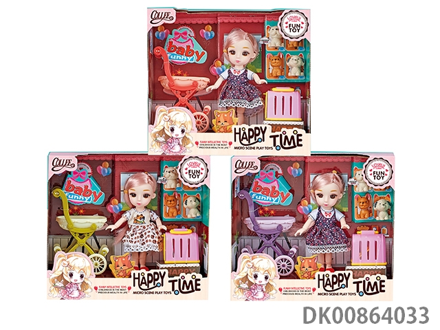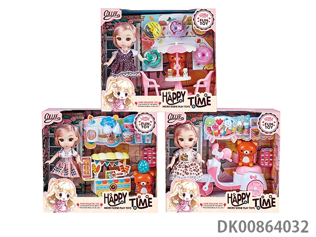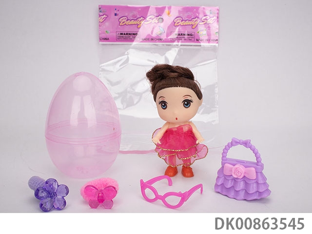 Opp color bag single 7-inch big eyed girl with skirt, bear, windmill, hair tie