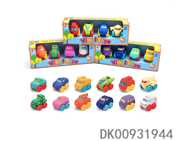 4 Plastic lined cartoon cars (sliding)