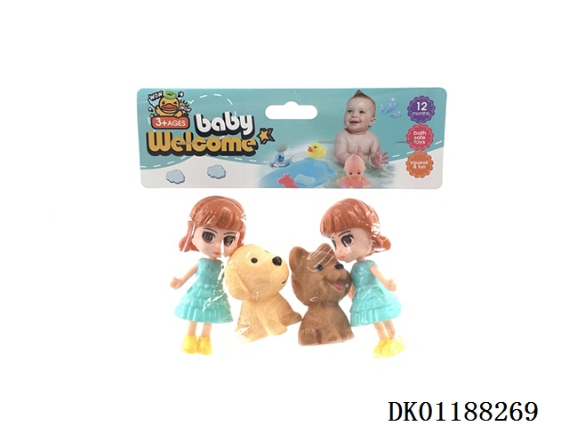 New model of 4 enamel animal babies splashing in the bathroom