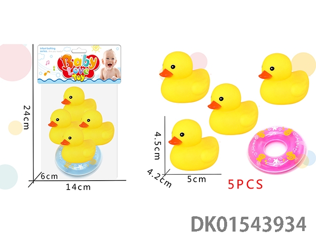 Vinyl duck bath toy with swimming ring vinyl bb whistle sound toy bathroom water play toy