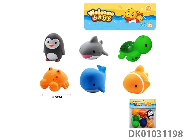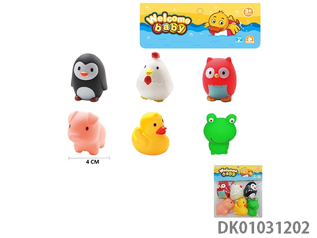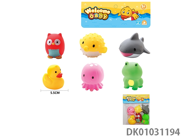 6 Water spraying animals (no whistle)/clip pvc bag