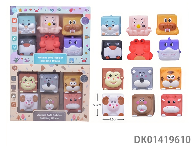 Vinyl building blocks for kneading and playing marine animals and land animals mixed (with automatic whistle)