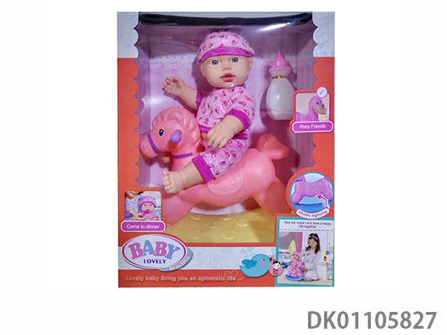 The new 14 inch enamel baby drinks water and urinates, with lights, music, shaking horses and milk bottles