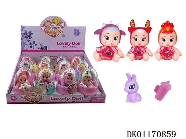 Egg enamel crying baby with one enamel pet and three baby bottles 12pcs/box