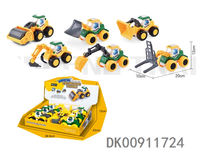 Light music inertia engineering vehicle 6pcs / box (six mixed)