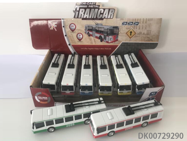1: 90 Alloy bus trolley car, 3 door, light with sound and light (6 in a display box, 1 in 3 colors)