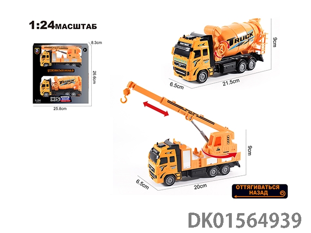 Russian 1:24 die-casting zinc alloy engineering crane and mixer truck double-layer set