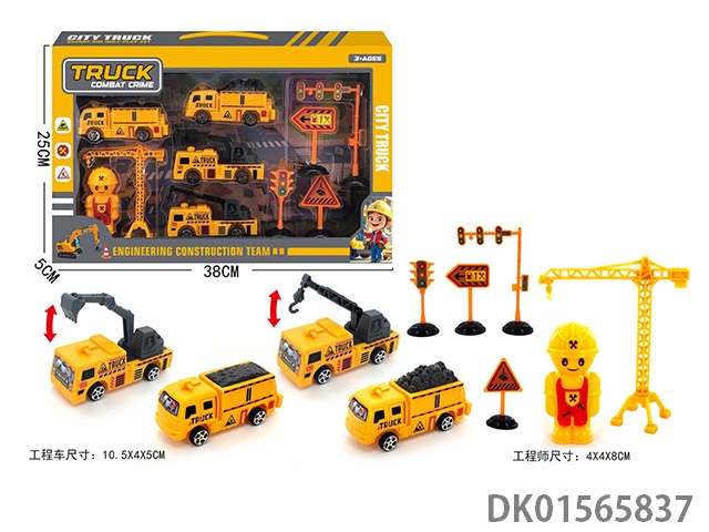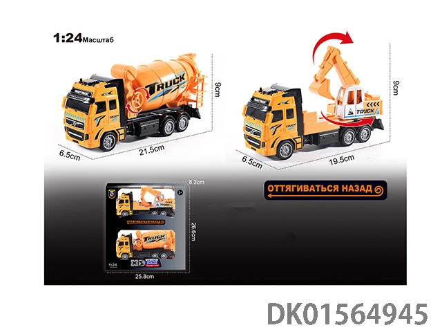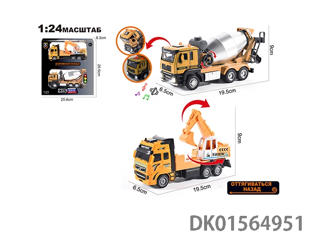 Russian 1:24 die-casting zinc alloy engineering excavator truck and mixer truck double-layer set