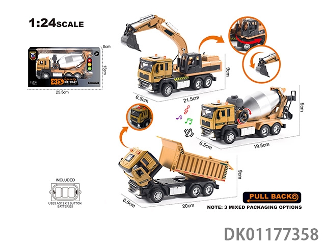 English 1:24 zinc alloy lighting and sound engineering series (mixer/excavator/dump truck) 3 mixed packaging