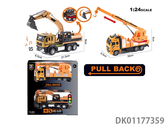 English 1:24 zinc alloy light and sound engineering mixer and excavator double layer set