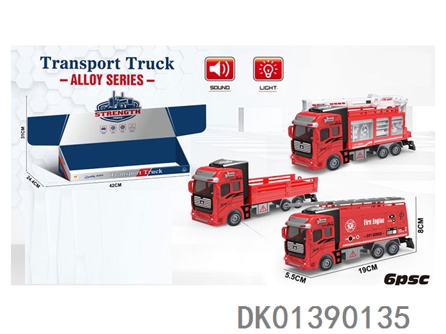 Huili alloy fire truck (three mixed models) 6pcs/box