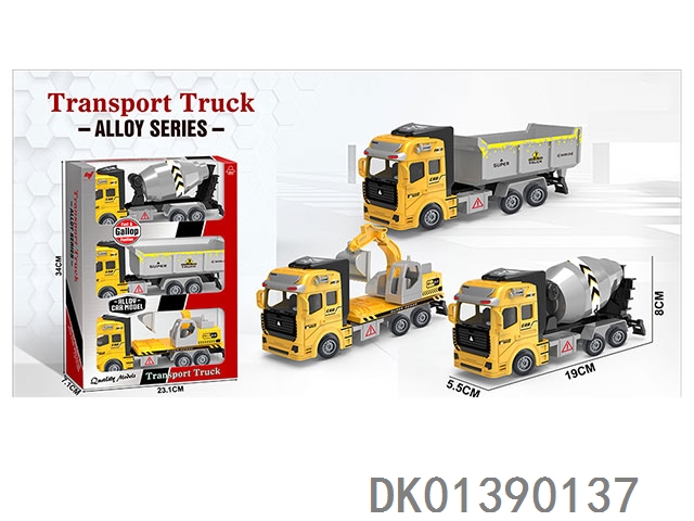 Return alloy engineering vehicle (three mixed models) 3pcs/box