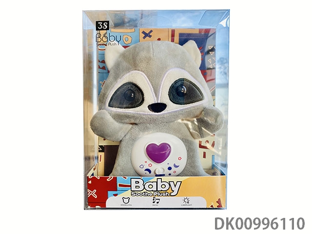 Soothing music, light, plush raccoon