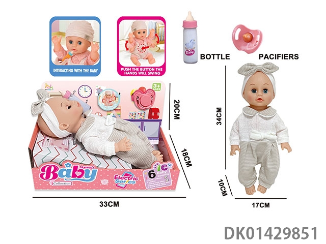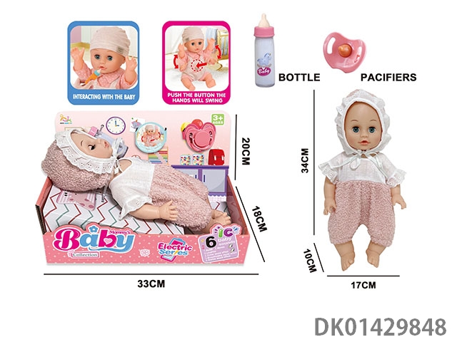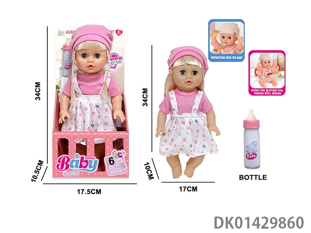 14 Inch english 6-speaker electric intelligent recording doll (electric injection molded body, pond glue hands and feet, no package electric with magical bottle, nipple)