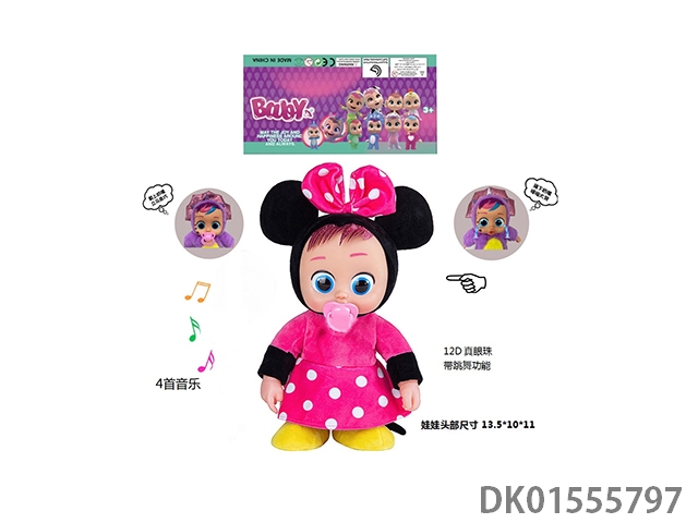 22 Inch injection molded solid body electric walking 12d real eye ball plush mickey crying baby with pacifier sensing, function description (can cry, can sing 4 songs, can dance, can walk) does not include electricity