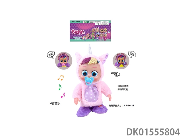 22 Inch injection molded solid body electric walking 12d real eye ball plush unicorn horse crying baby with pacifier sensing, function description (can cry, can sing 4 songs, can dance, can walk) does not include electricity