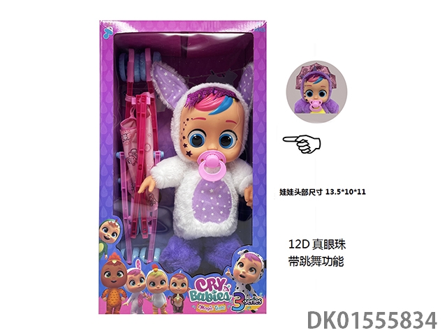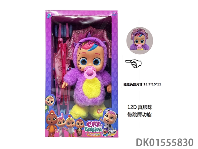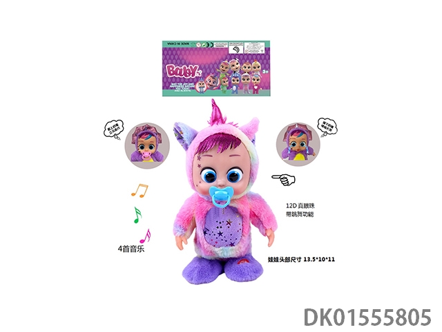 22 Inch injection molded solid body electric walking 12d real eye ball plush dinosaur horse crying baby with pacifier sensing, function description (can cry, can sing 4 songs, can dance, can walk) does not include electricity