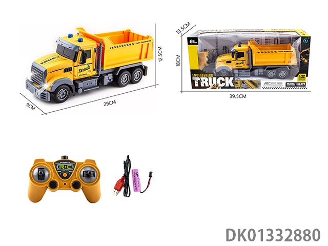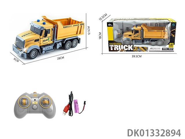 Remote control four-way 1 to 32 short head engineering dump with light remote control car (electric package)