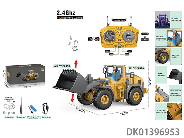9-Way 2.4g alloy tire bulldozer loader with lighting and sound effects