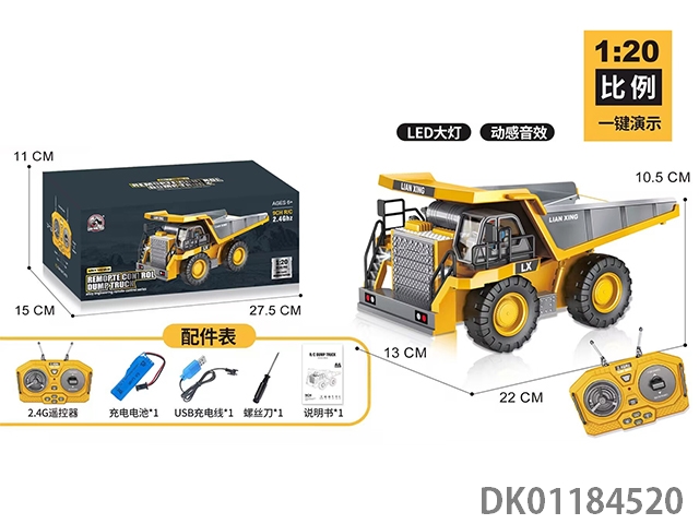 2.4G 7-way remote-controlled light and music long head engineering dump truck (including electricity and stone materials)