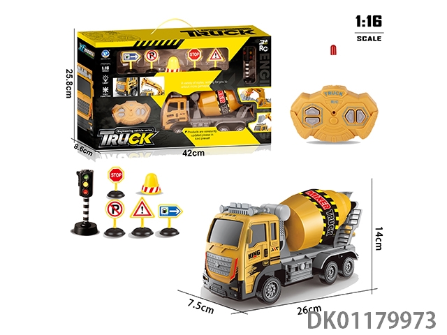 1: 16 4-Way engineering mixer truck (forward light) with traffic signs