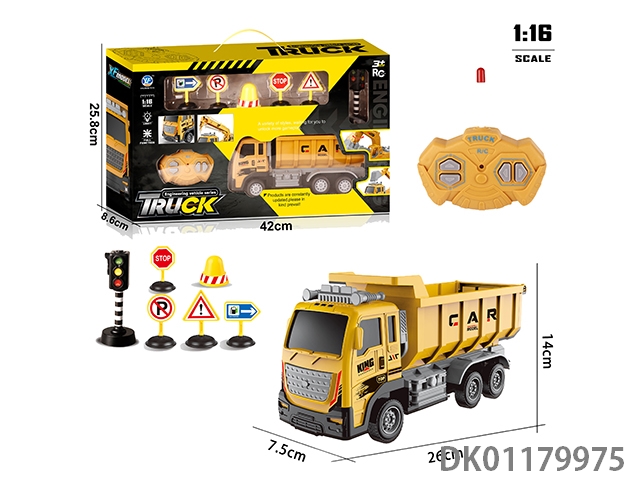 1: 16 4-Way engineering dump truck (forward light) with traffic signs