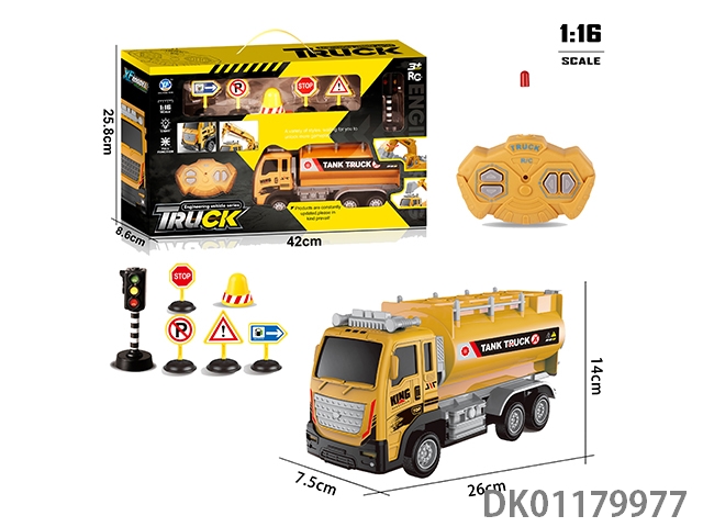 1: 16 4-Way engineering oil tanker (forward light) with traffic signs