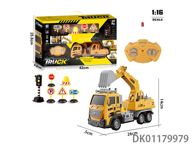 1: 16 4-Way engineering excavation vehicle (forward light) with traffic signs